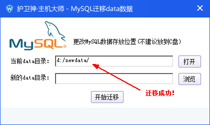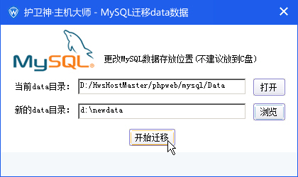 1、打開主機大師軟件界面,點擊右下方【遷移MySQL數(shù)據(jù)目錄】按鈕,彈出遷移data數(shù)據(jù)窗體:
