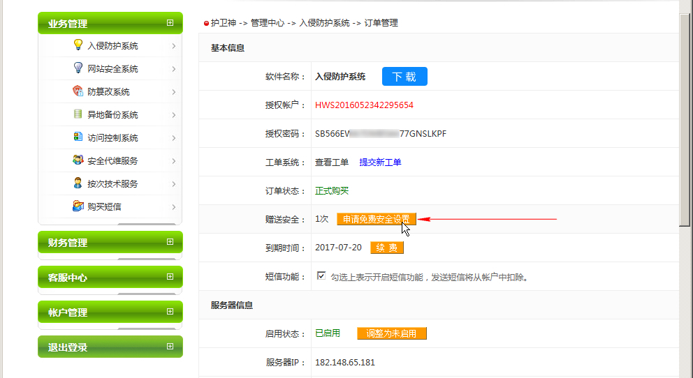 管理控制臺(tái) 軟件管理 工單系統(tǒng) 在線充值 購(gòu)買短信 發(fā)票索取